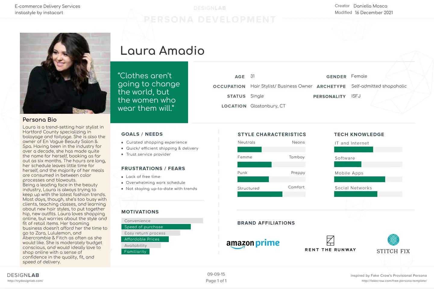Meet Laura! She is the user persona created to represent a segment of users likely to use Instacart's new retail feature.